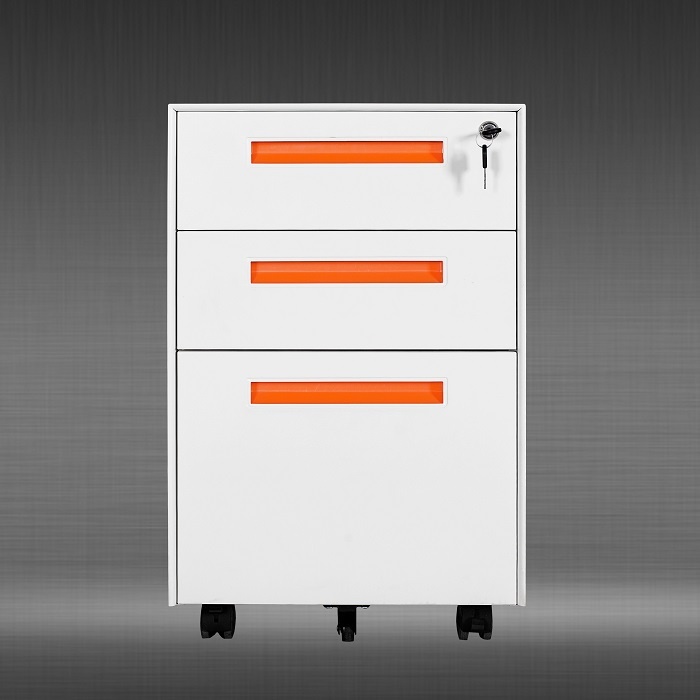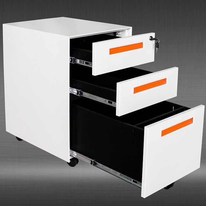 1 central locking mechanism controlling 3 drawers;